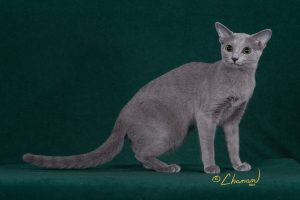The Russian Blue is an old breed thought to originate in northern Russia. Though short-haired, they have a beautiful dense “double coat,” tipped with silver, which shimmers in the light.